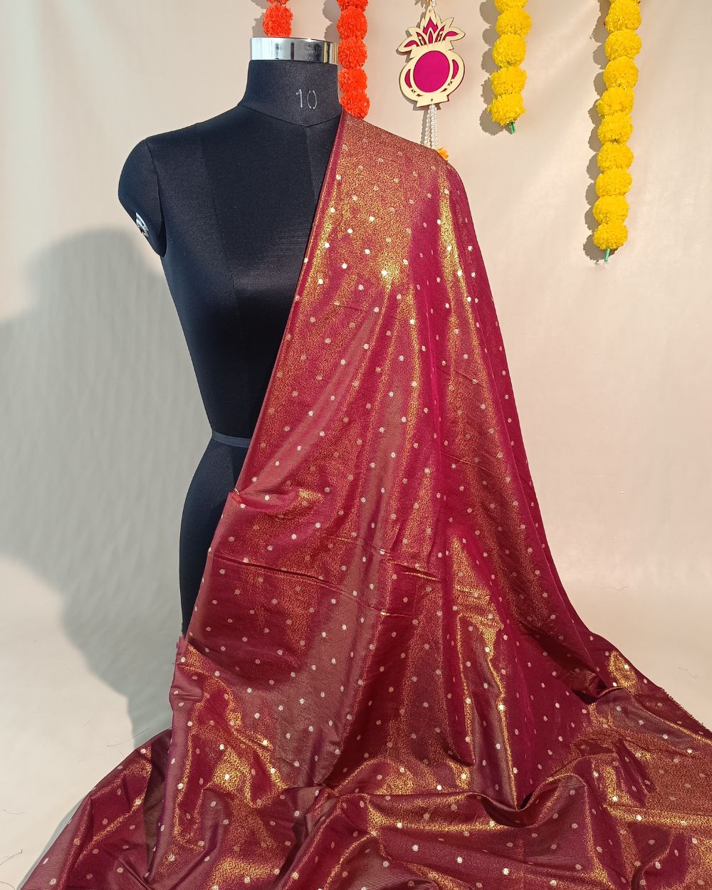 Cosmos Butti Work Wine Colour 42 Inches Width