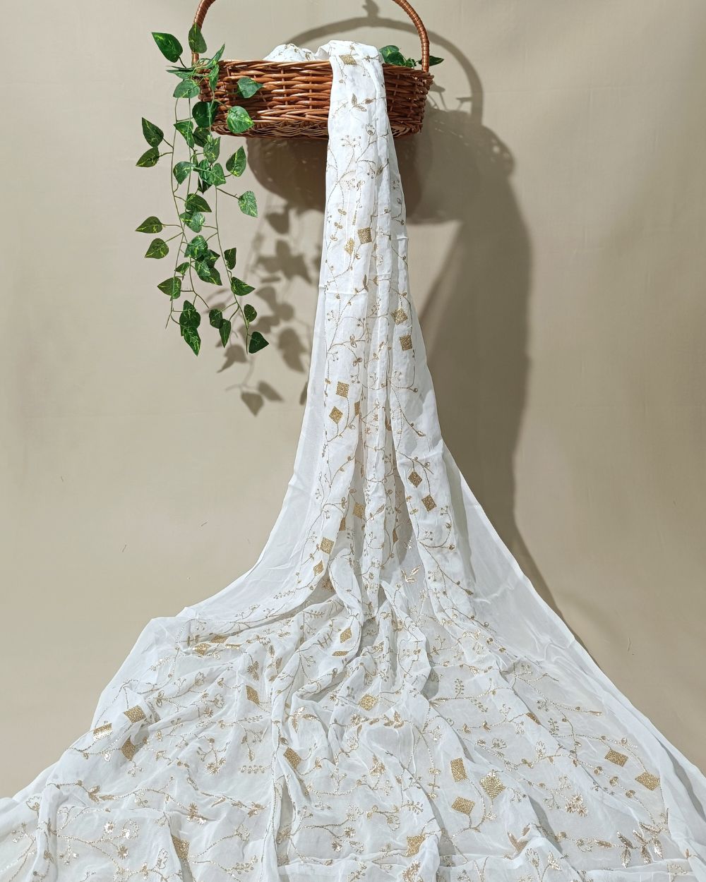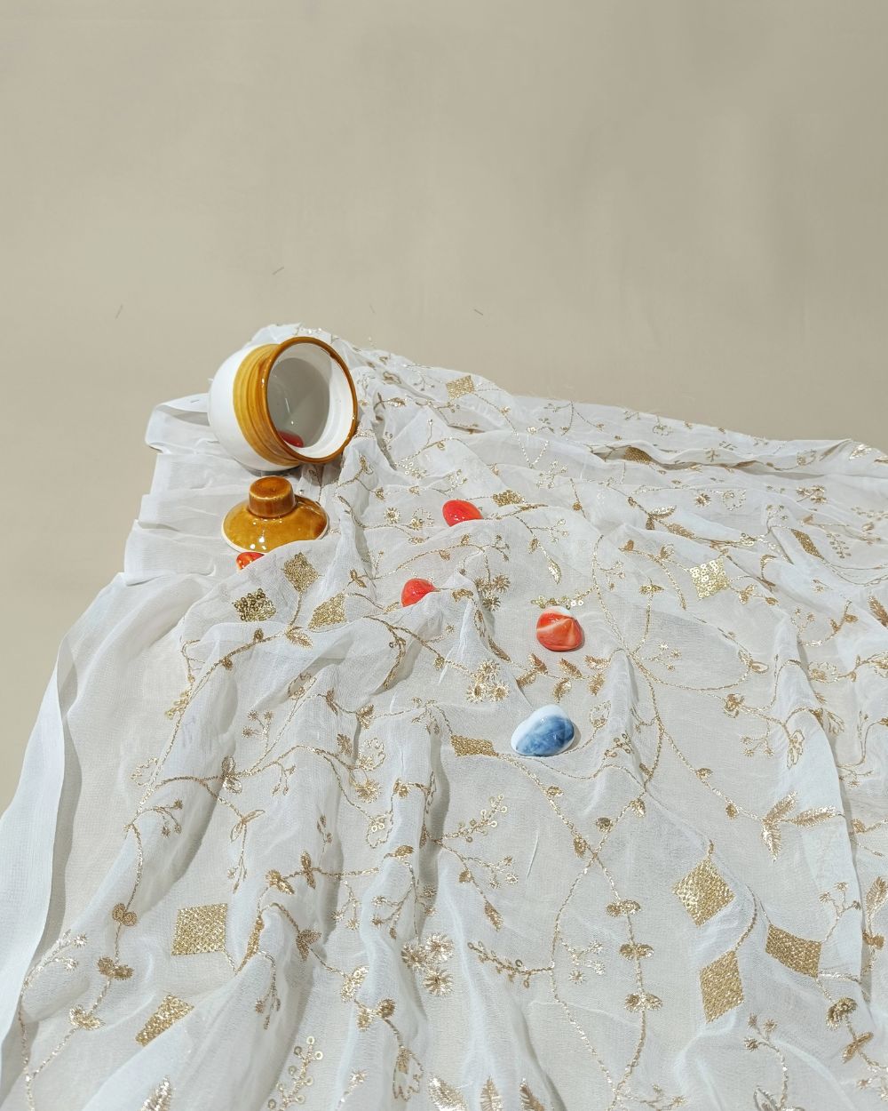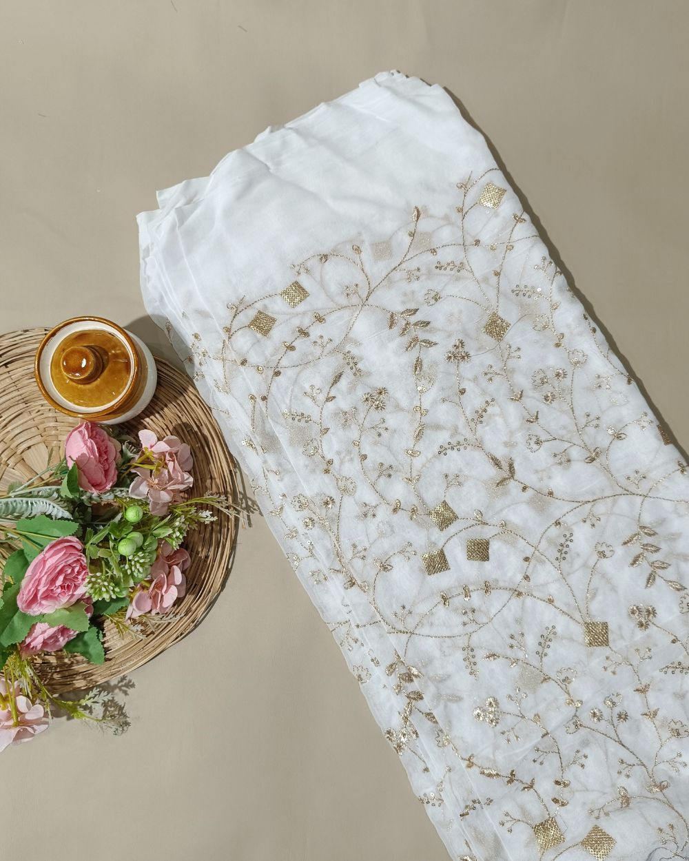 Dyeable Lucknowi Work Viscose Georgette White Colour 44 inches width