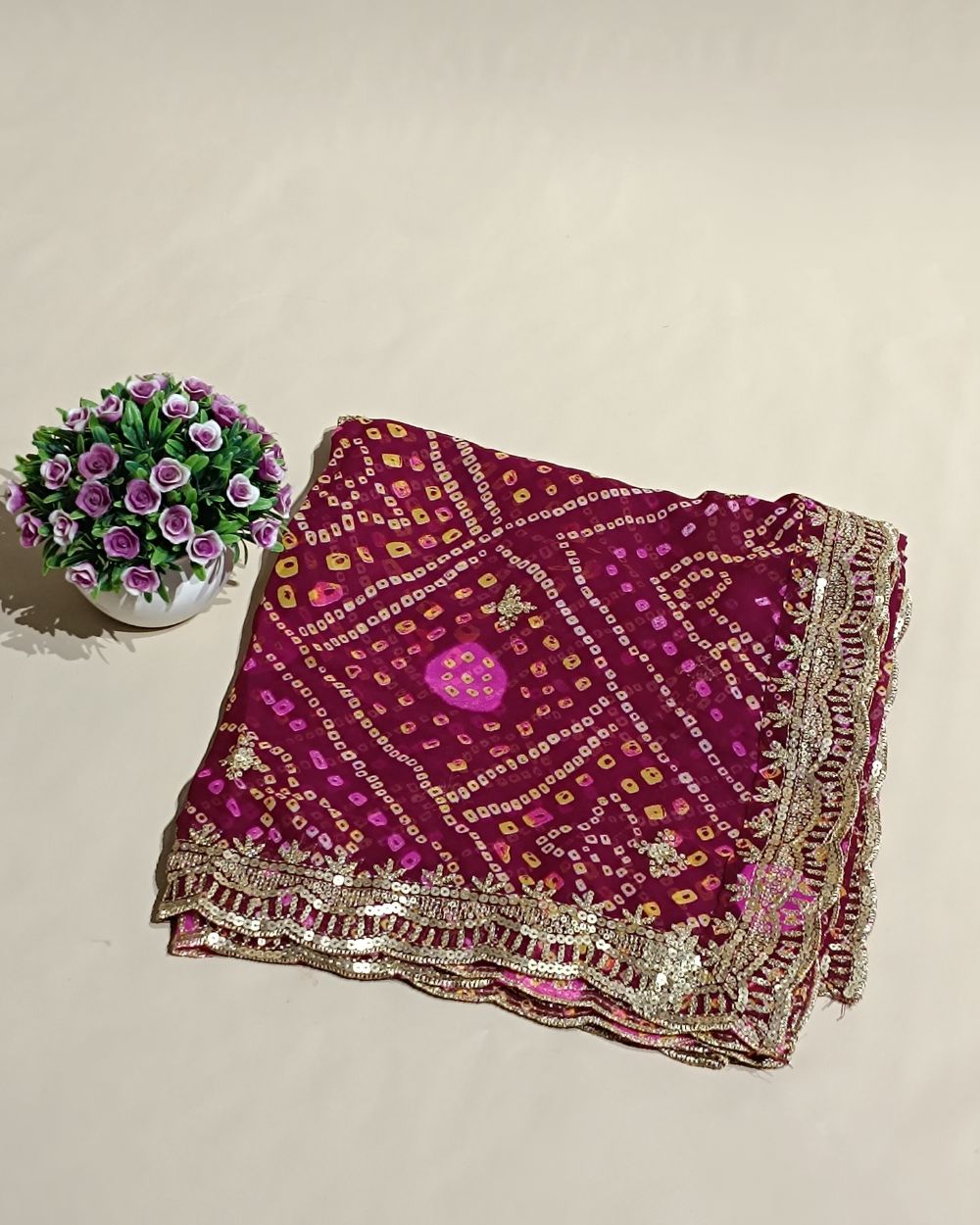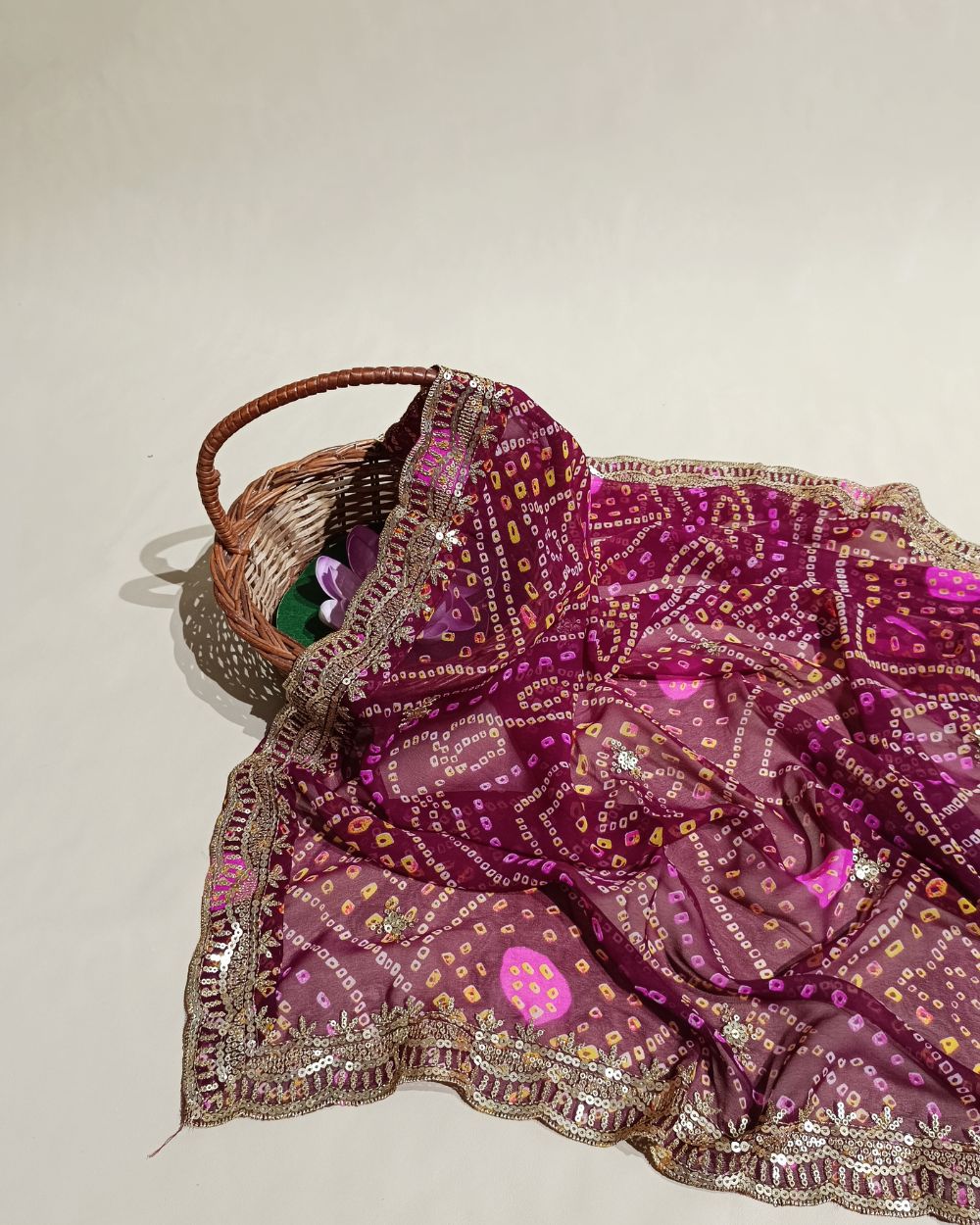 Georgette Bandhani Dupatta with Cut Work Border Wine Colour 37 Inches Width