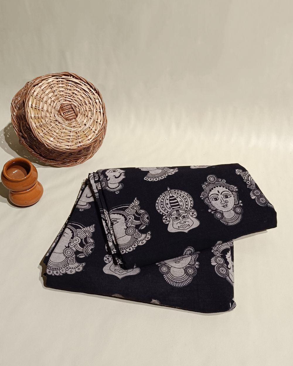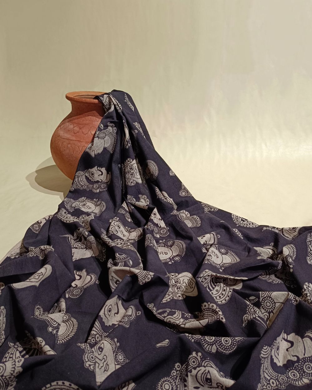 Hand Block Printed Cotton Kalamkari Black Colour 46 Inches Width