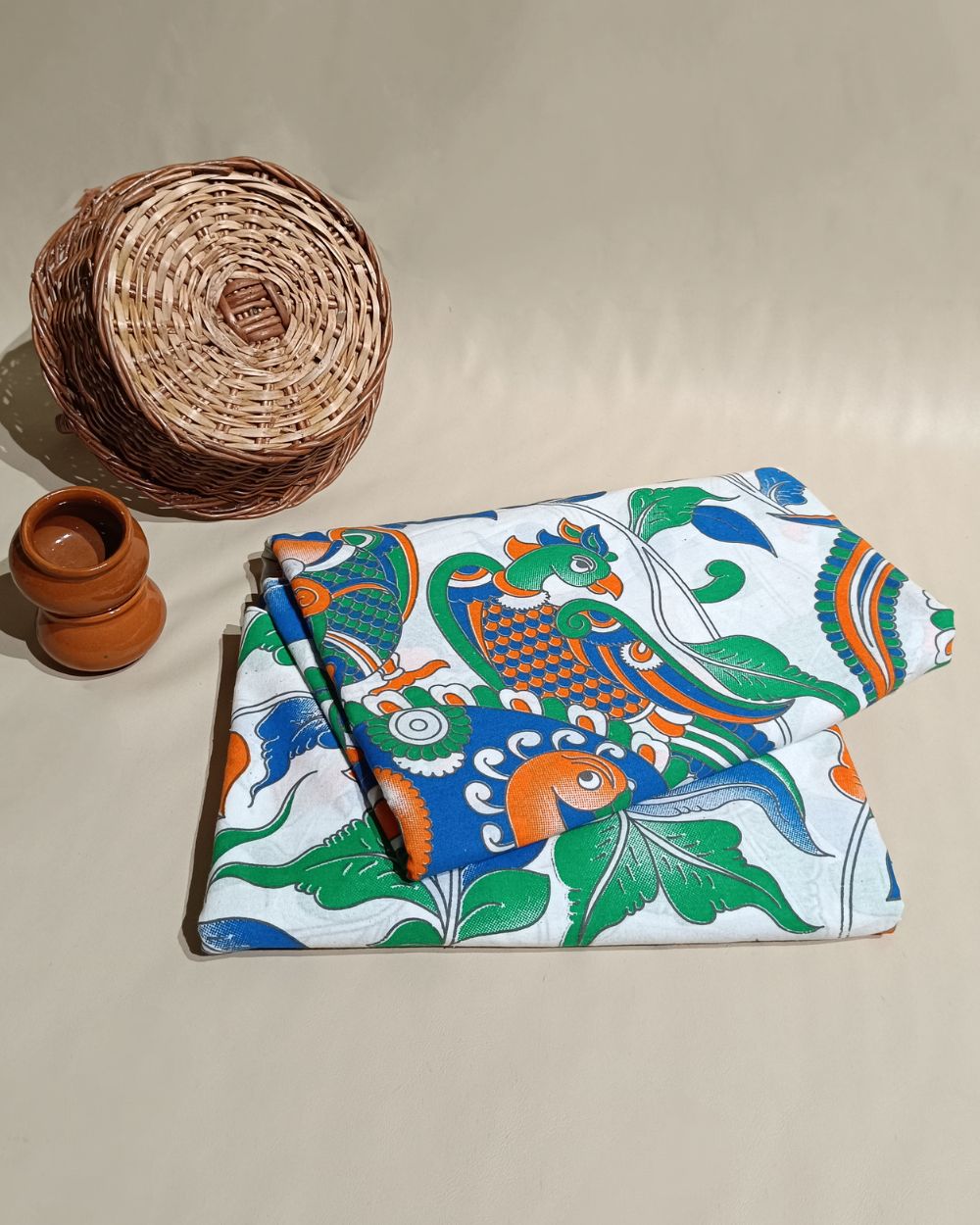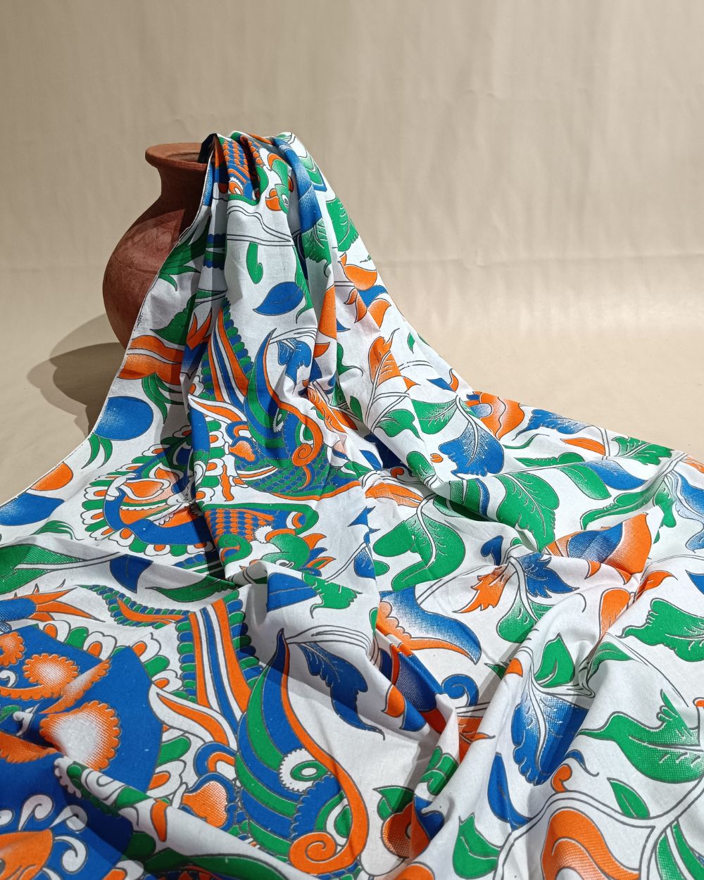 Hand Block Printed Cotton Kalamkari White Colour 46 Inches Width