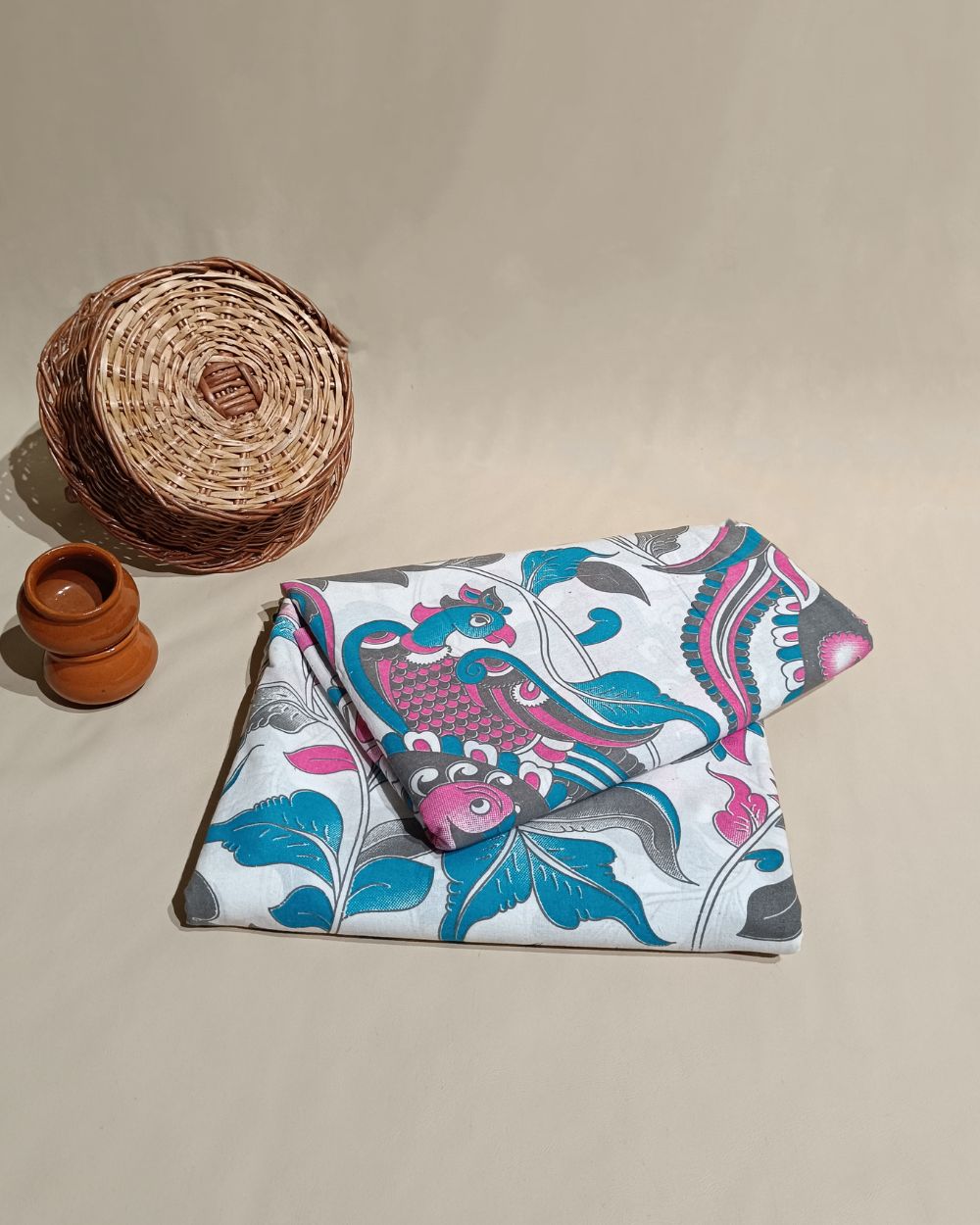 Hand Block Printed Cotton Kalamkari White Colour 46 Inches Width