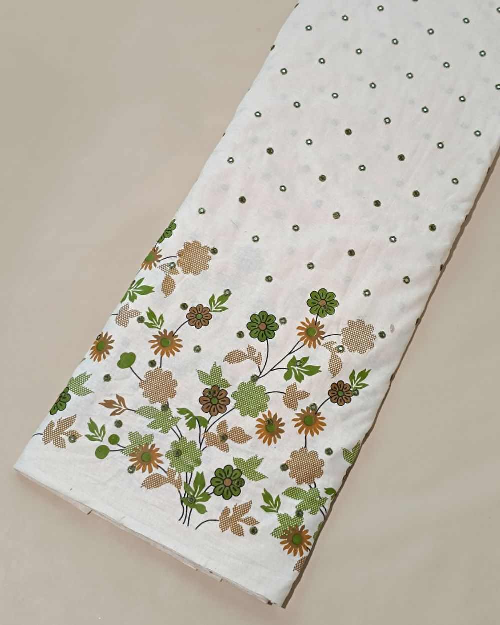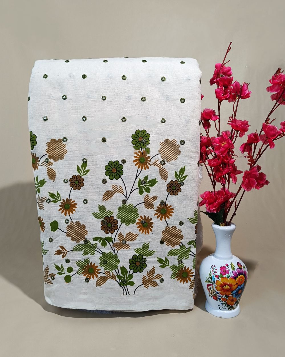 Khadi Cotton Abla Work with Border Mehandi Green Colour 42 Inches Width