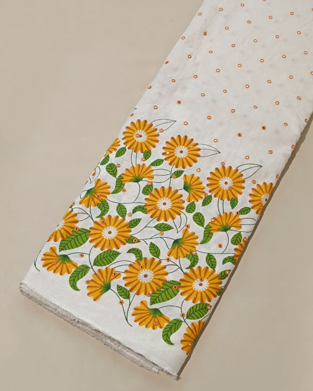 Khadi Cotton Abla Work with Border Mustard Yellow Colour 42 Inches Width