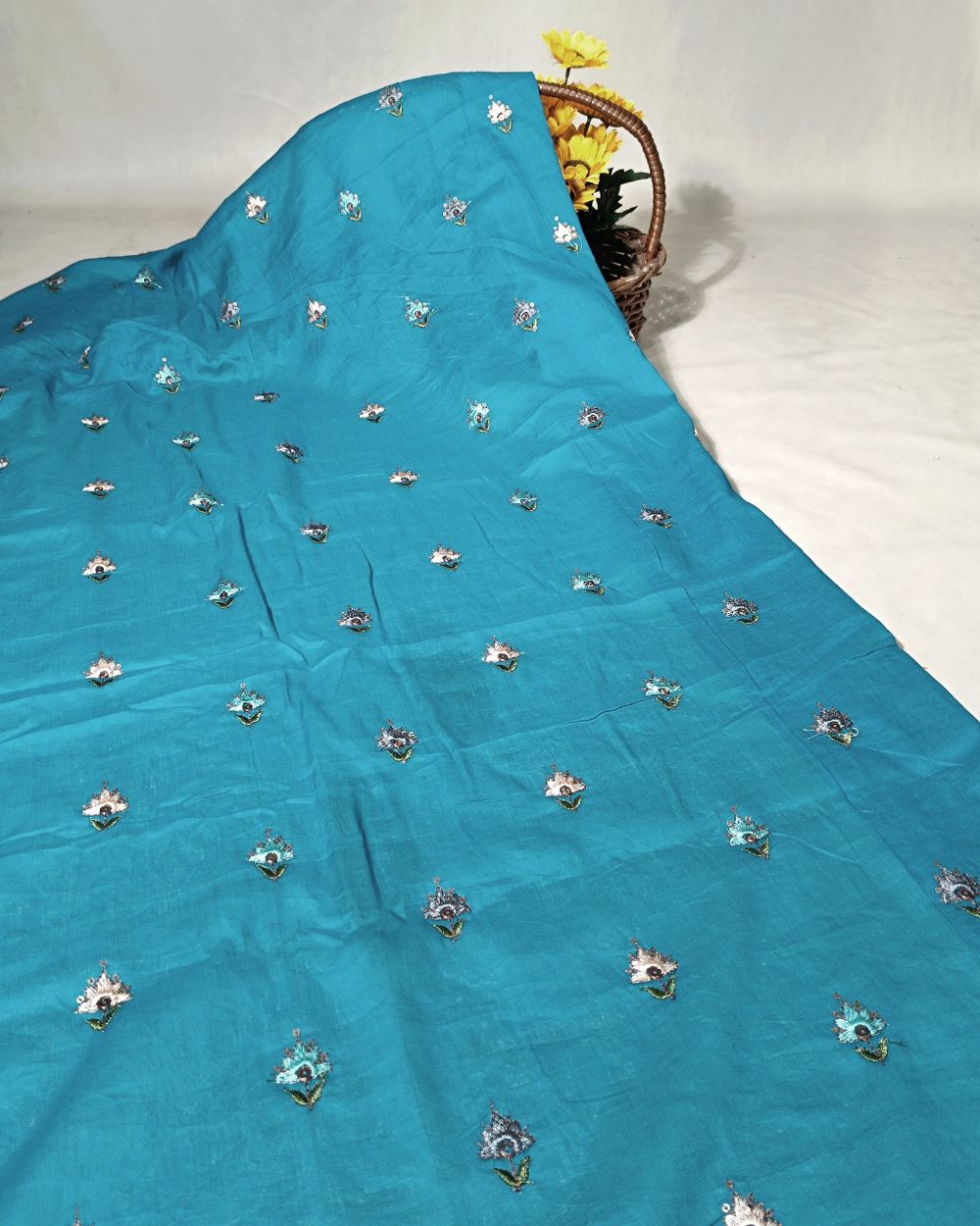 Pretty little blooming floral designs with beautiful thread (dhaga) embroidery create a unique and elegant pattern, adding a charming visual appeal to the soft mal cotton fabric.