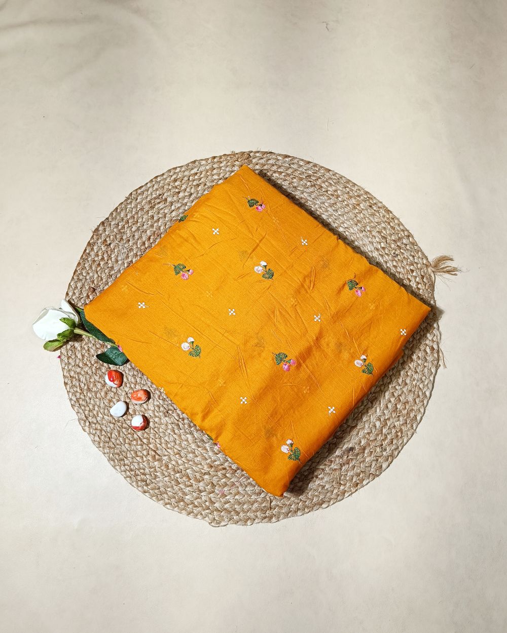 Pretty little blooming floral designs with beautiful thread (dhaga) embroidery create a unique and elegant pattern, adding a charming visual appeal to the soft mal cotton fabric.
