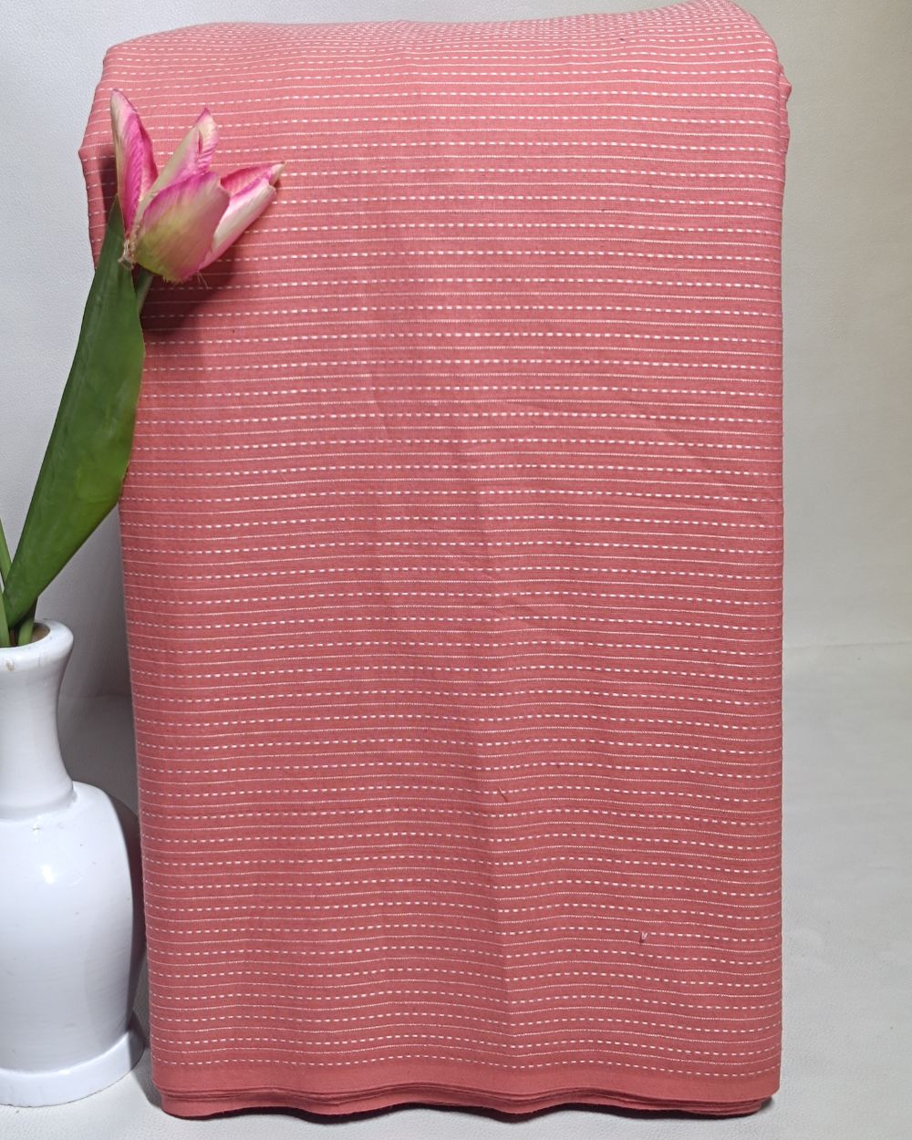 Plain Cotton Kantha Work Peach Colour 43 Inches Width