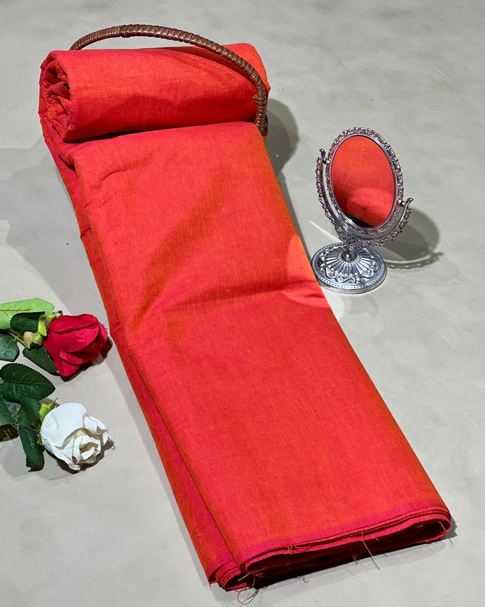 Plain Khadi Cotton Fabric Orange Colour 45 Inches Width