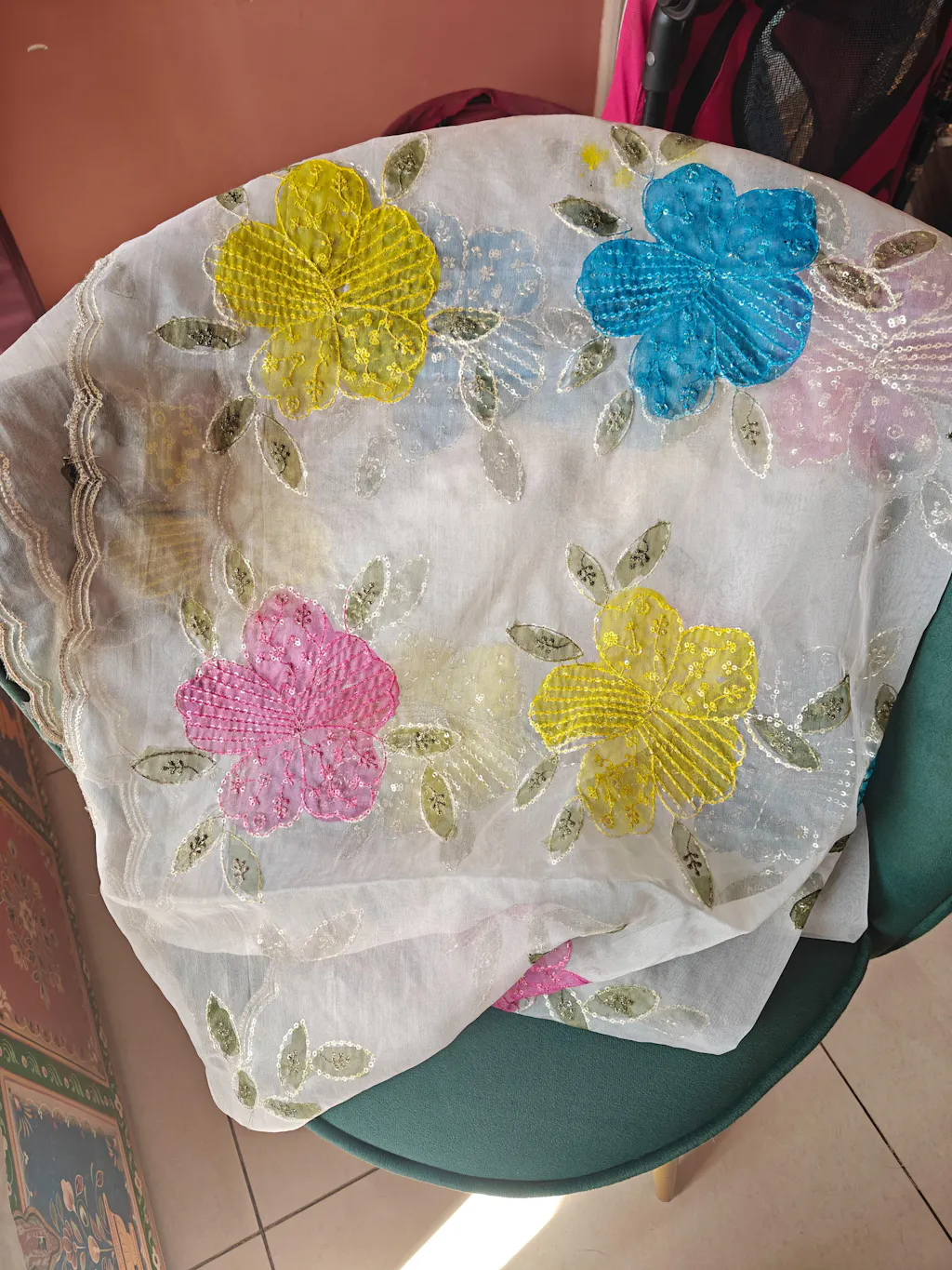 I absolutely adored the organza dupatta; it is exquisitely beautiful and exceptionally flattering when worn, significantly enhancing the suit's overall aesthetic.