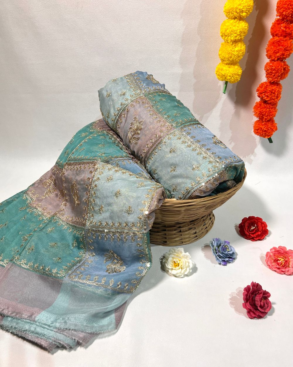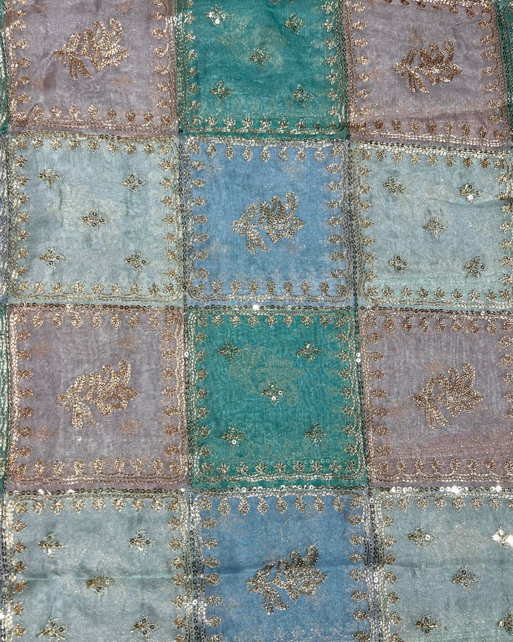 Position Print with Sequin Embroidery on Premium Organza Mint Green Colour 44 Inches Width