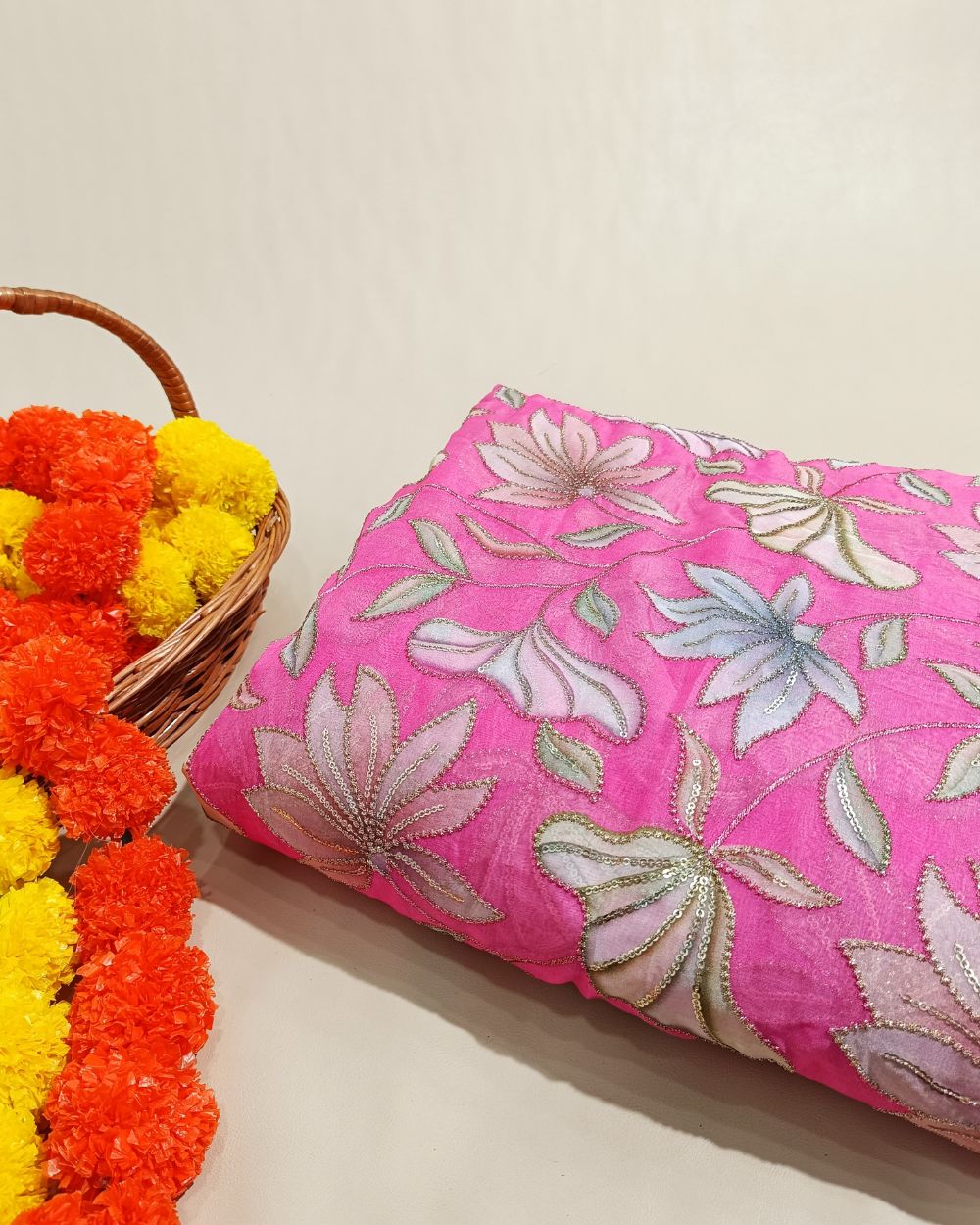 Premium Organza Work Pink Colour 44 Inches Width