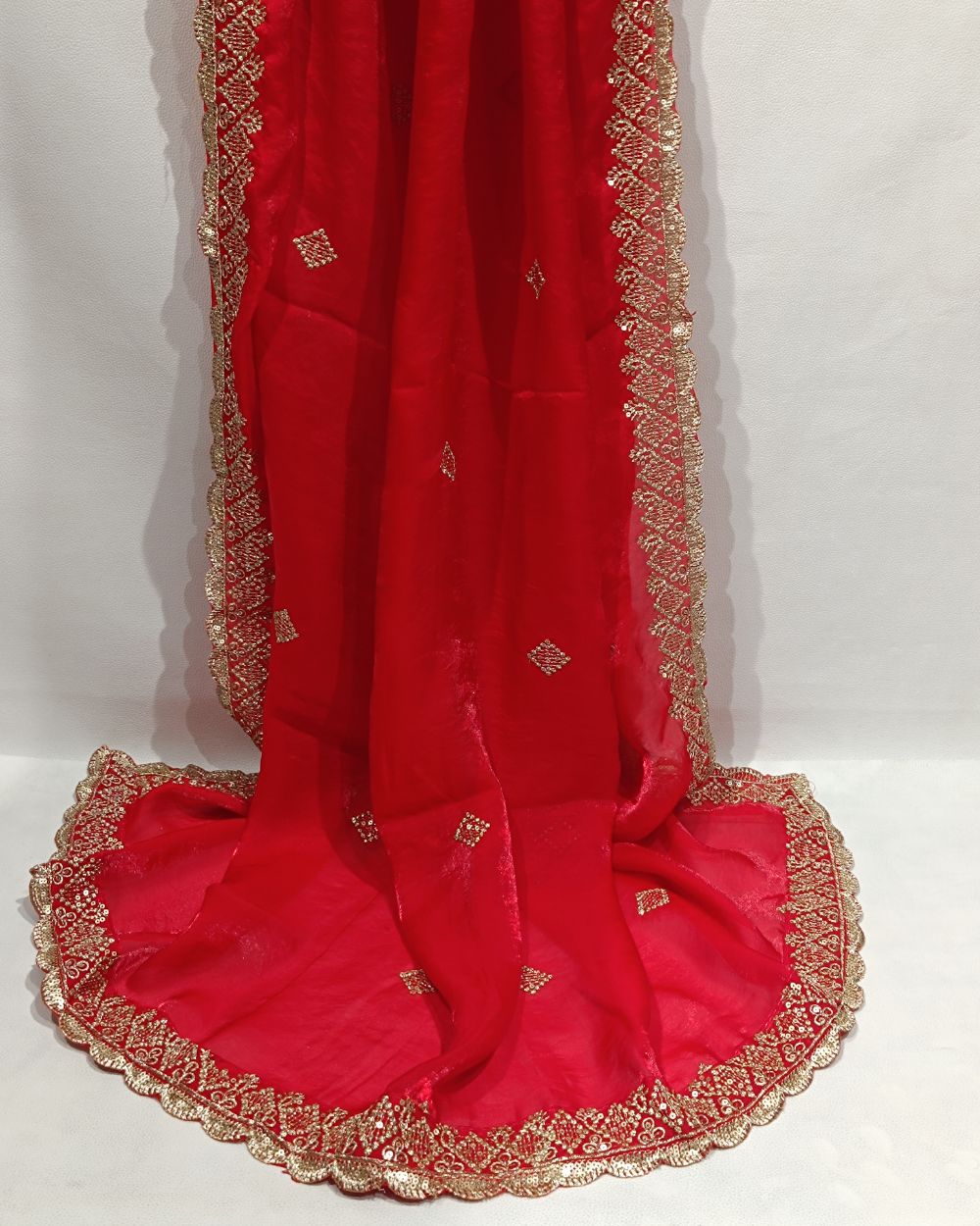 Space Silk Work Dupatta with Border Dark Red Colour 45 Inches Width