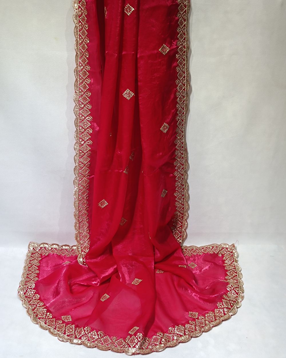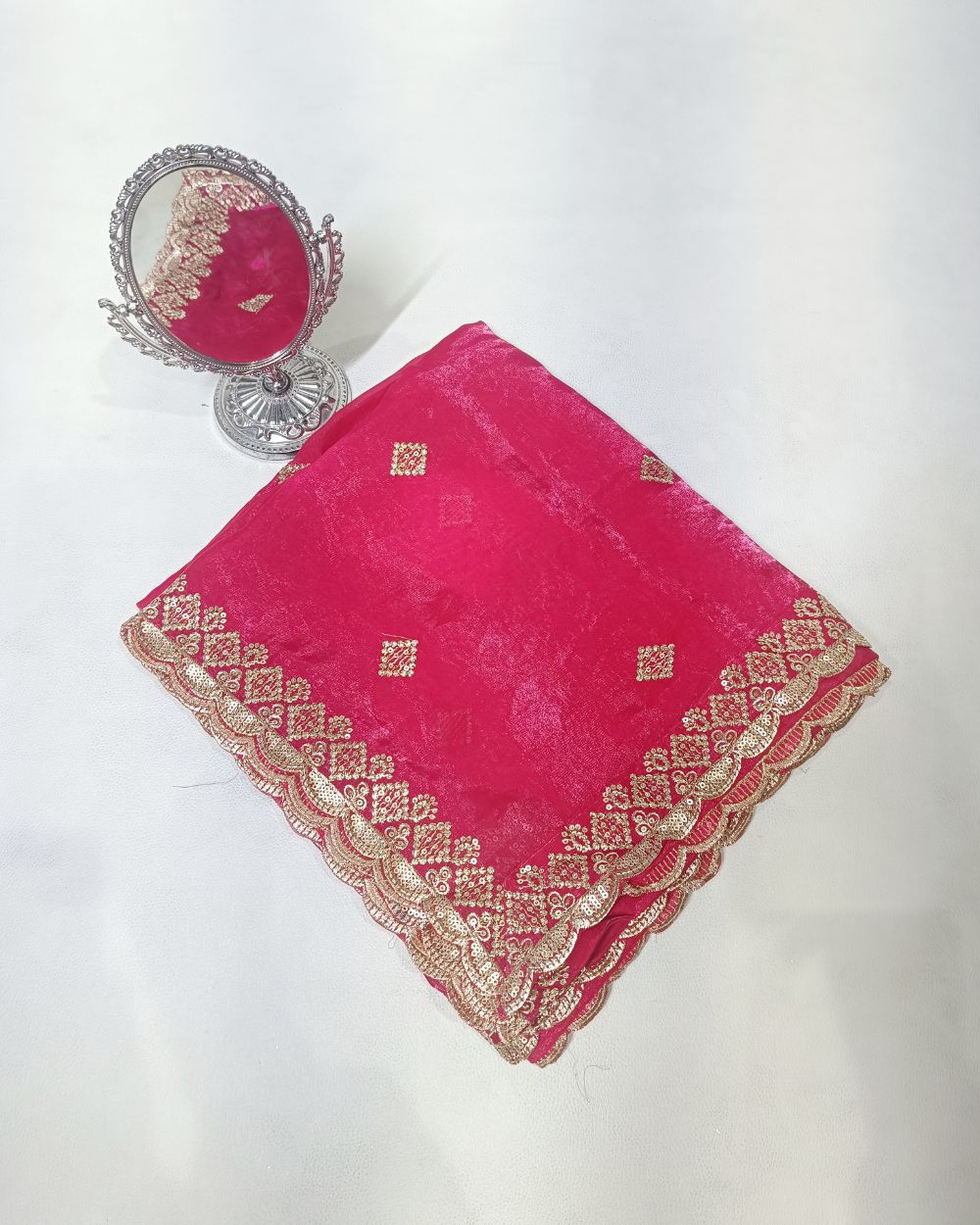 Space Silk Work Dupatta with Border Hot Pink Colour 45 Inches Width