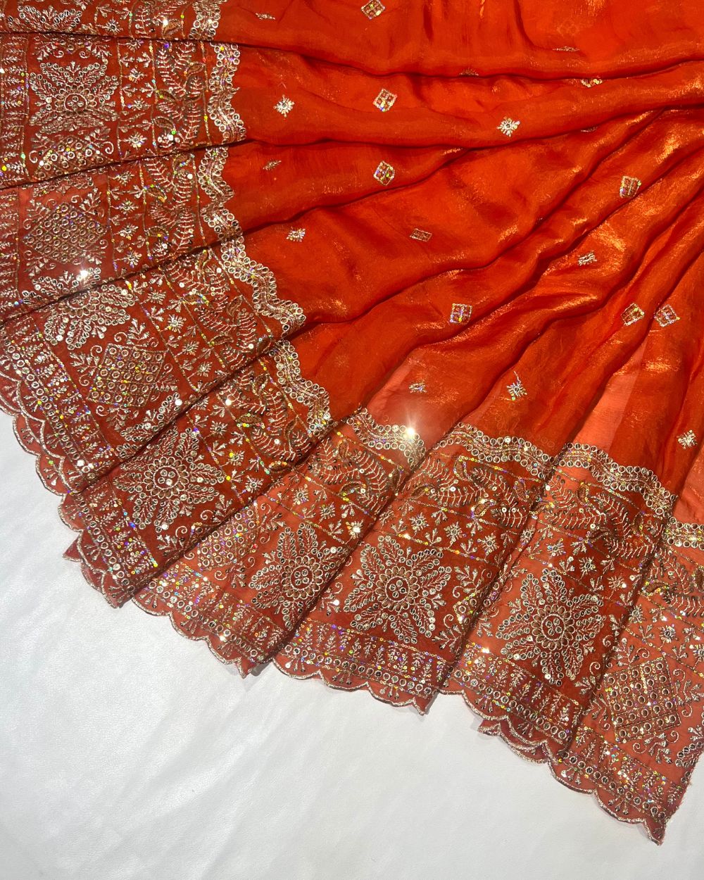 Space Silk Work with Border Burnt Orange Colour 42 Inches WidthSpace Silk Work with Border Burnt Orange Colour 42 Inches Width