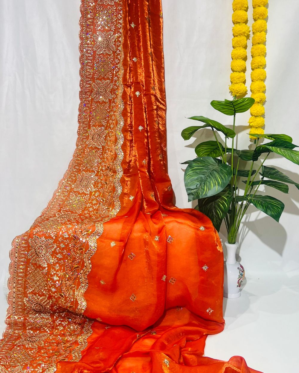 Space Silk Work Dupatta with Border Burnt Orange Colour 38 Inches Width