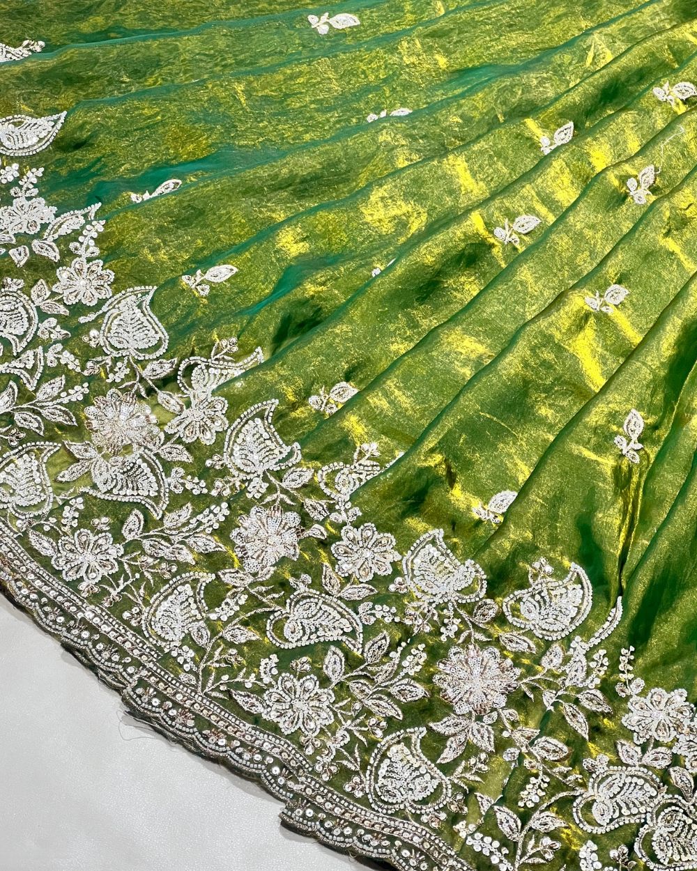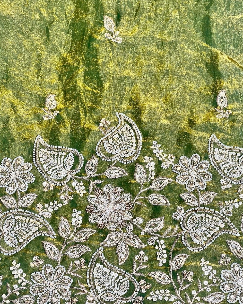 Space Silk Work with Border Mehandi Green Colour 52 Inches Width